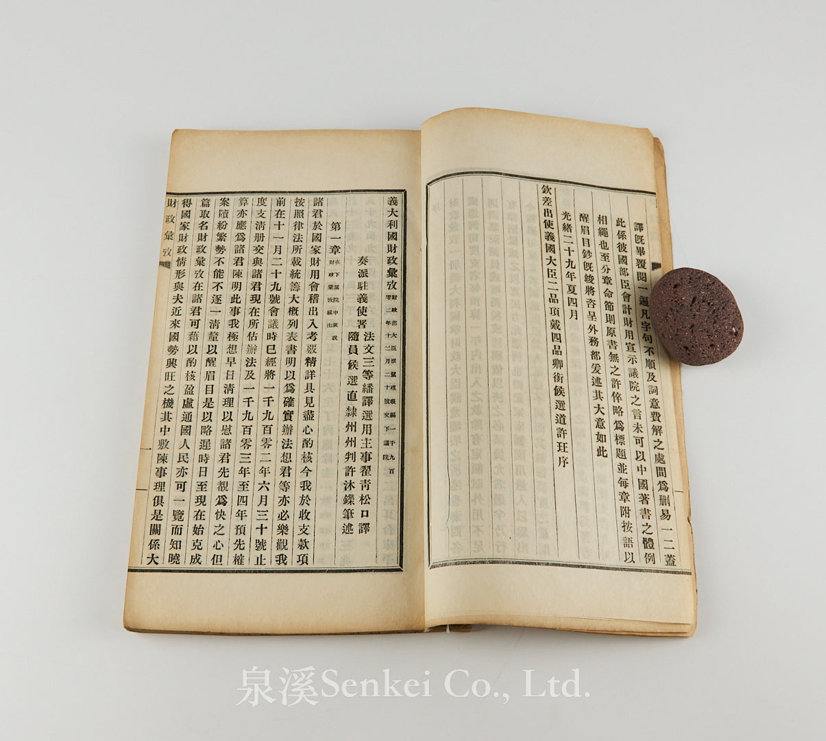 Yidali Caizheng Kao 義大利財政彙考 [A Study of Italian Public Finance] | Yidali Quanyan Zhilue 義大利權煙志略 [An Outline of the Italian State Tobacco Monopoly, with appended tables of official tobacco prices] 駐義使署, 1905, Qing