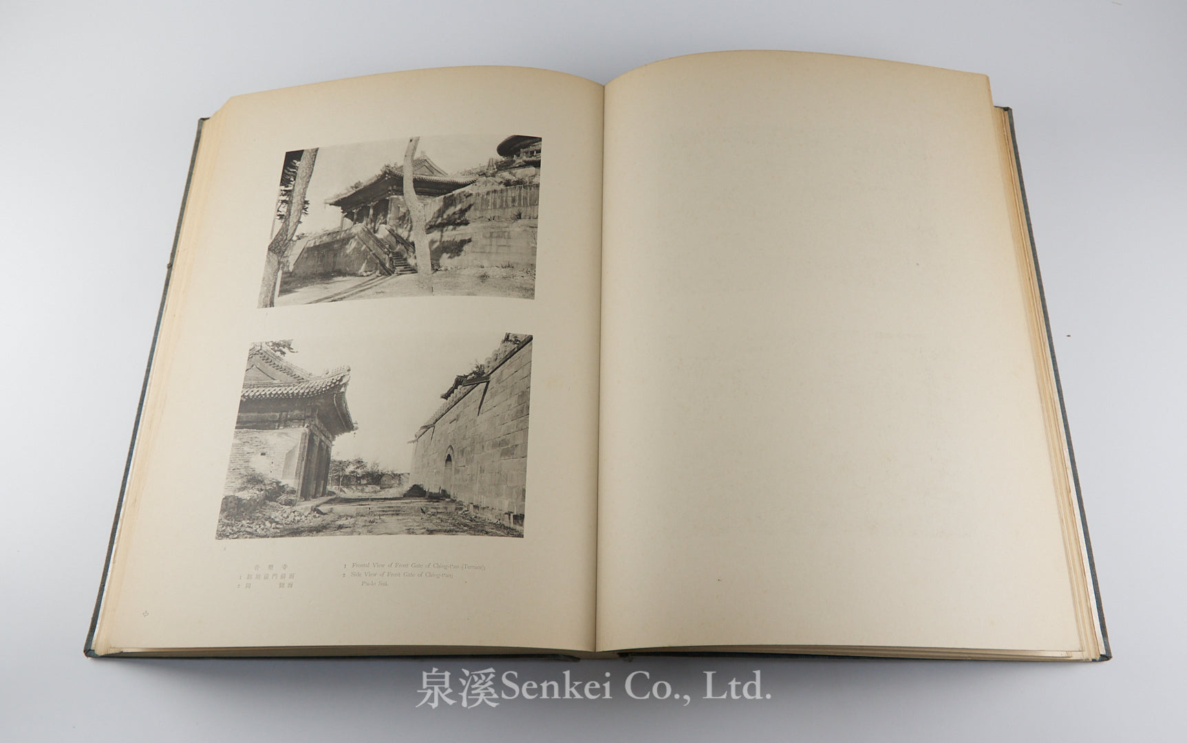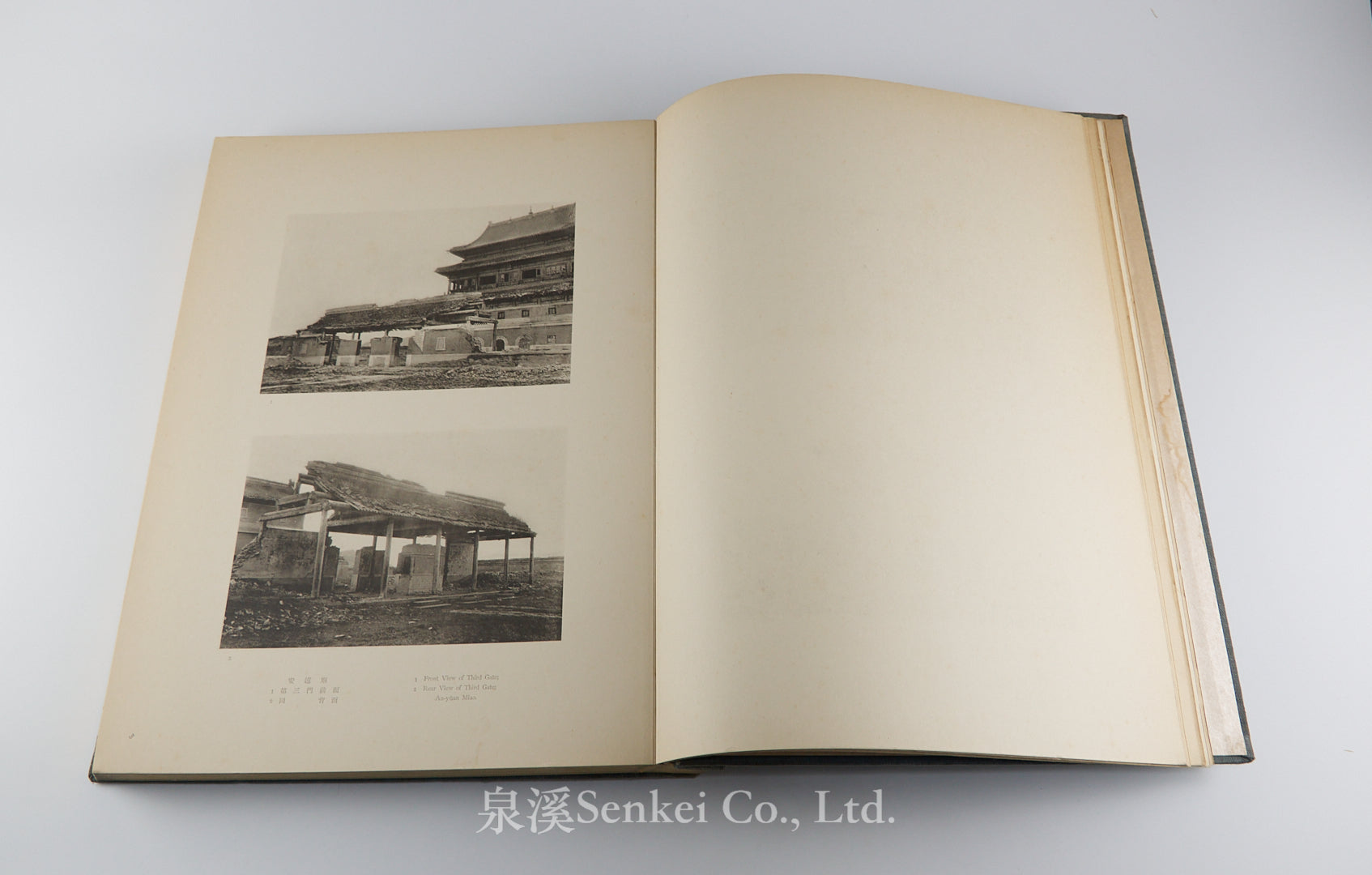 Each volume documents major architectural and religious sites of the former Qing imperial summer capital at Jehol, including the Imperial Mountain Resort (Bishu shanzhuang) and the surrounding Tibetan-Buddhist temples. Following the Japanese occupation of Jehol in 1933, a survey led by the architectural historian Sekino Tadashi and his assistant Takeshima Takuichi produced more than two thousand photographs of the imperial complex and its monuments; the present work selects the finest of these for publication.